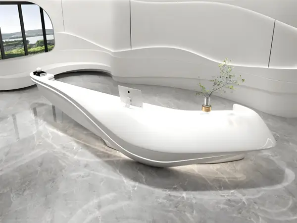 The dental clinic reception desk is not just a visual centerpiece—it’s also a functional hub: